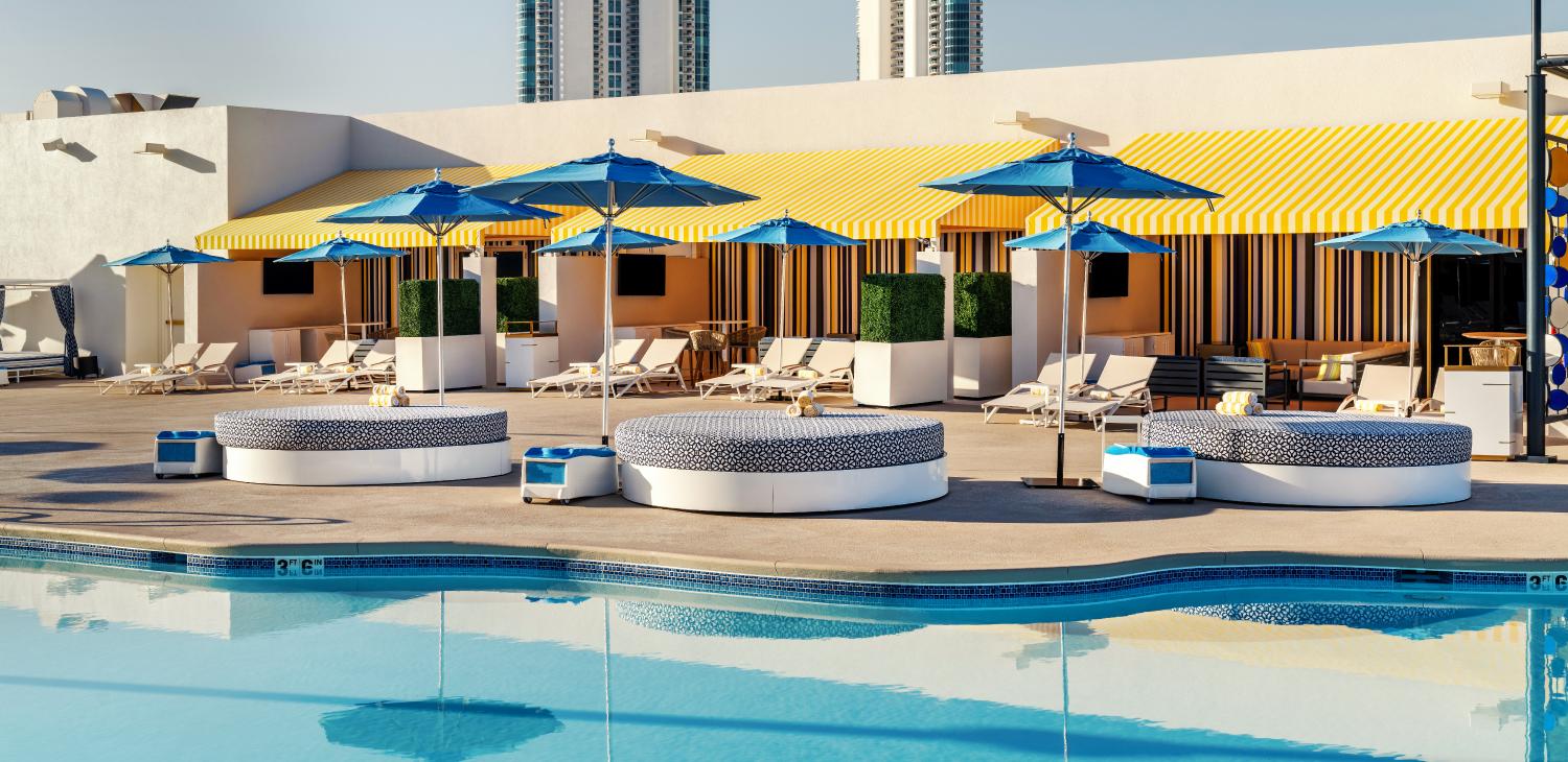 The newly renovated Swim & Social pool is located on the 8th floor and features well-appointed cabanas, daybeds and chaise lounges as well as a full bar and comfort-controlled restaurant. Weekend DJs, poolside games and stunning views all around make it a sun-drenched haven where guests can turn up the heat in the spacious pool or just chill under an umbrella. Admission is complimentary for hotel guests. Minors under 18 years of age must be accompanied by an adult.
